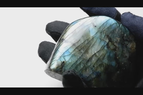 見る角度によって変化する「ラブラドレッセンス」は、神秘的な輝きと幻想的な色彩とが垣間見れる非常に美しい石です。