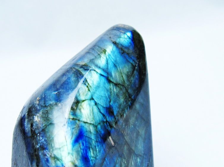 見る角度によって変化する「ラブラドレッセンス」は、神秘的な輝きと幻想的な色彩とが垣間見れる非常に美しい石です。