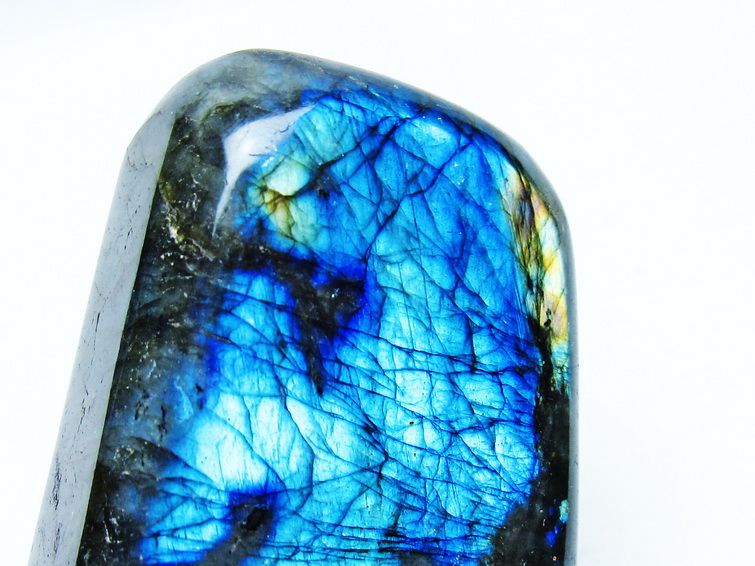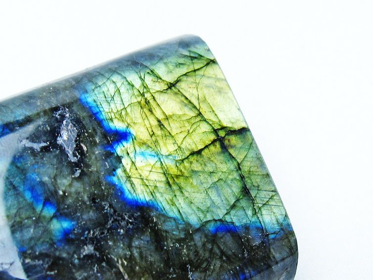 見る角度によって変化する「ラブラドレッセンス」は、神秘的な輝きと幻想的な色彩とが垣間見れる非常に美しい石です。