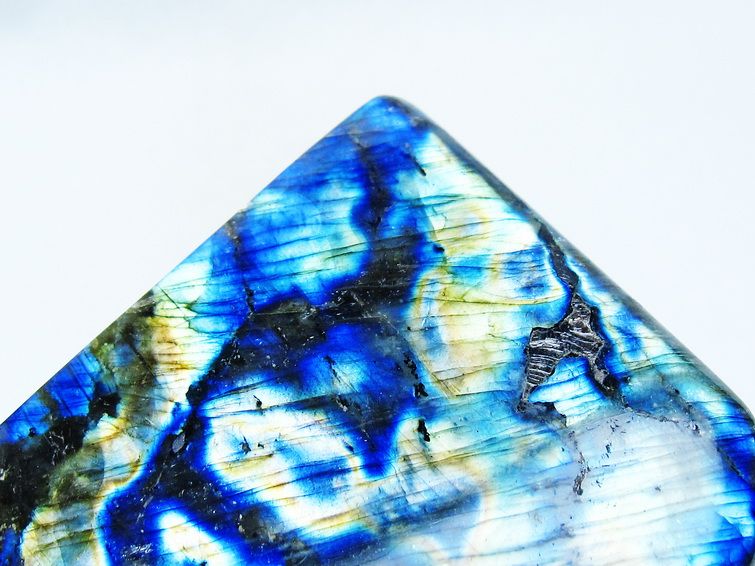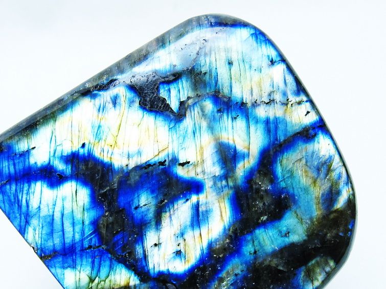 見る角度によって変化する「ラブラドレッセンス」は、神秘的な輝きと幻想的な色彩とが垣間見れる非常に美しい石です。