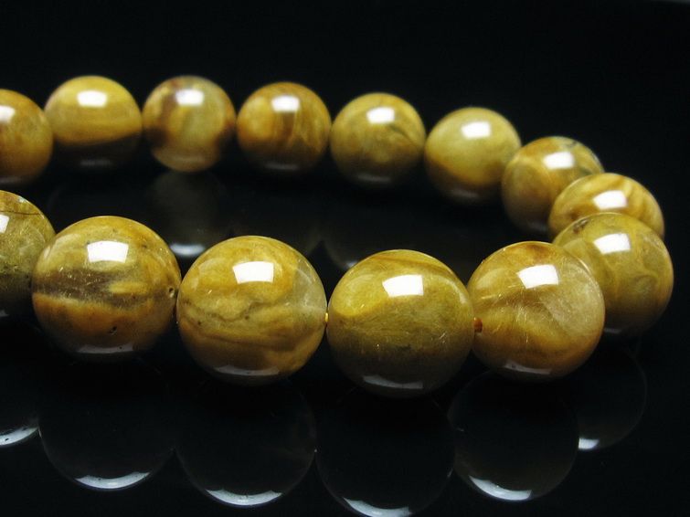 ゴールド タイチンルチルクォーツ ブレスレット 14mm 一点物 211-2417