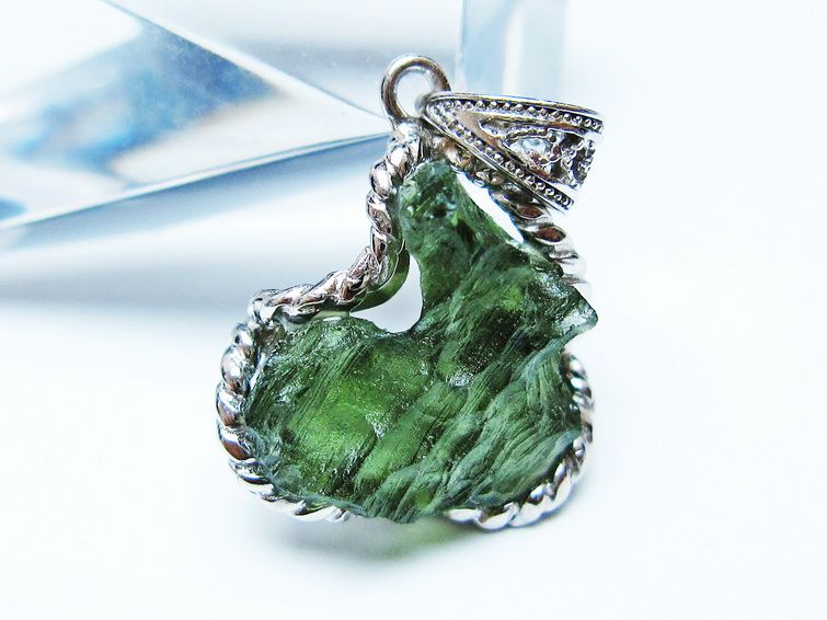 モルダバイトは宇宙の叡知を秘めた石とされ、強力なヒーリング効果の他、自由な発想や思考能力の向上に良いと言われています。また、魔よけの効果もあるとされ、ネガティブな感情やパワーを跳ね除ける力を秘めています。