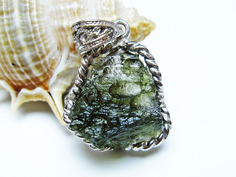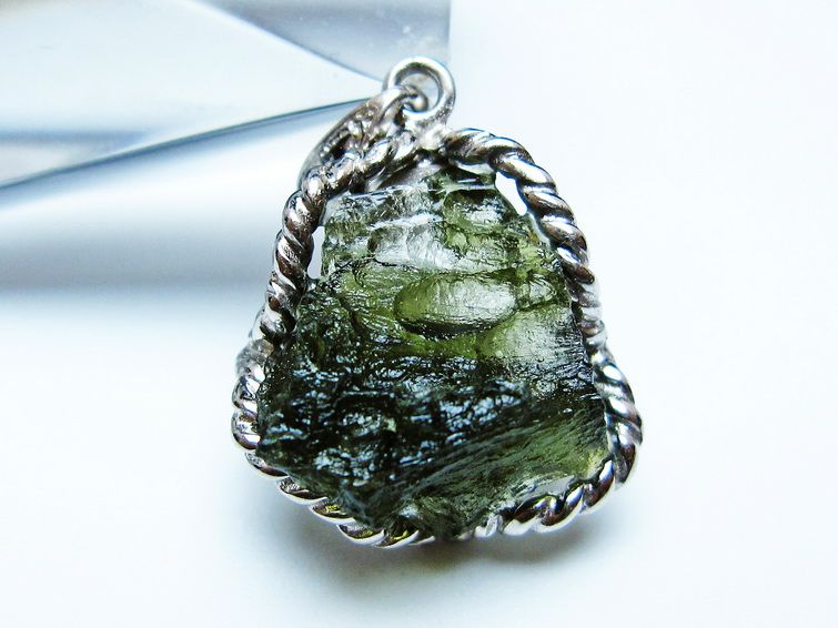 モルダバイトは宇宙の叡知を秘めた石とされ、強力なヒーリング効果の他、自由な発想や思考能力の向上に良いと言われています。また、魔よけの効果もあるとされ、ネガティブな感情やパワーを跳ね除ける力を秘めています。