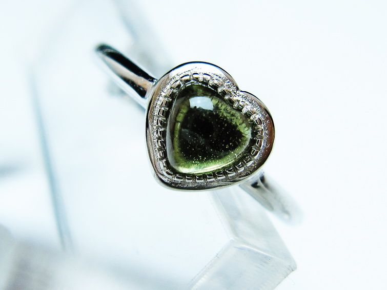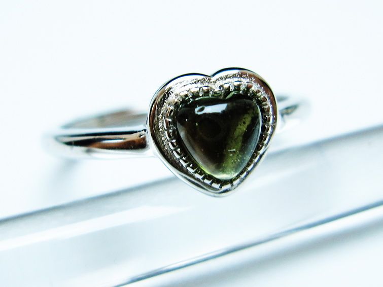 モルダバイト リング 指輪 ハート 13号 フリーサイズ 一点物 199-437