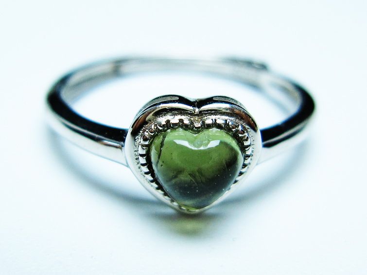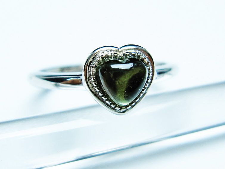 モルダバイト リング 指輪 ハート 13号 フリーサイズ 一点物 199-464
