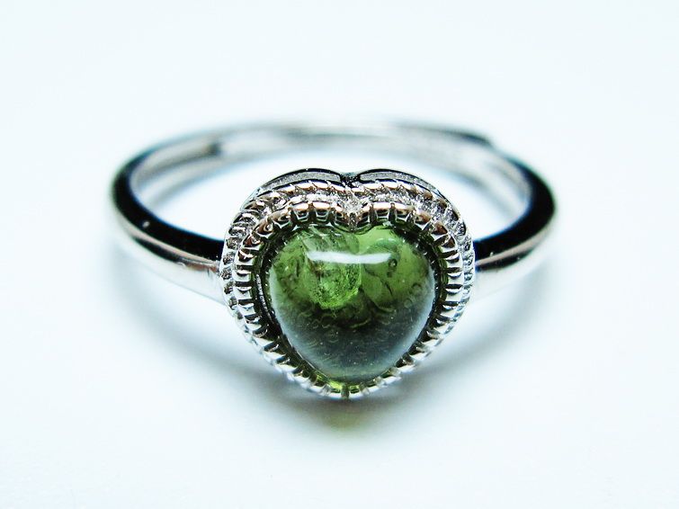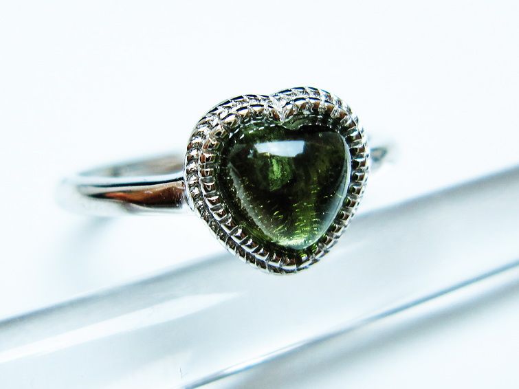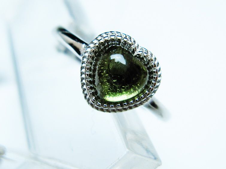 モルダバイト リング 指輪 ハート 13号 フリーサイズ 一点物 199-464