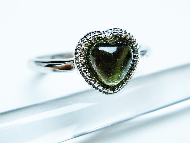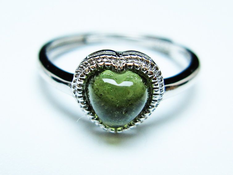 - モルダバイト ハート指輪