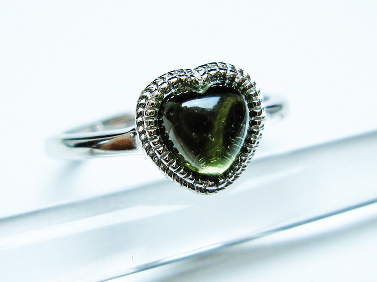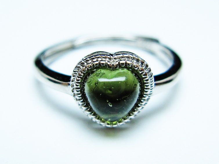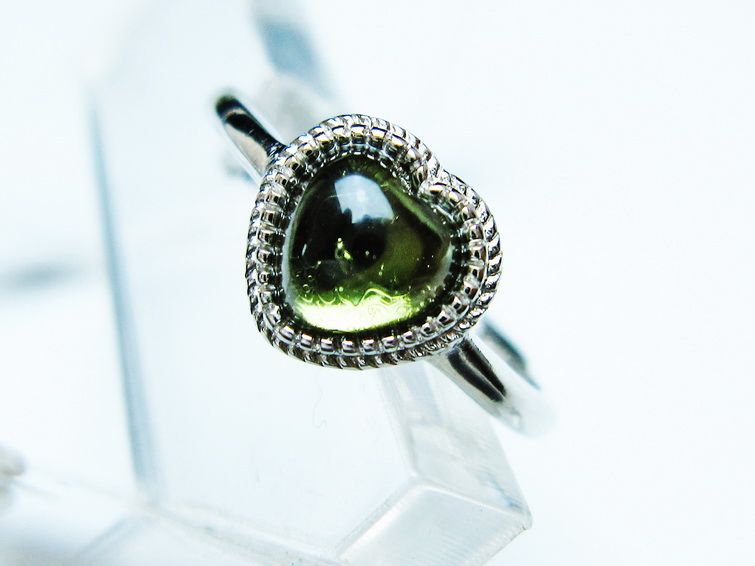 モルダバイト リング 指輪 ハート 13号 フリーサイズ 一点物 199-464