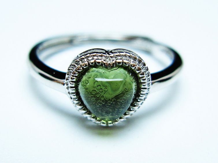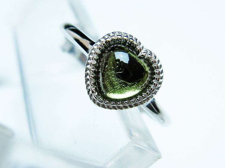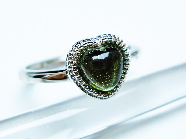 - モルダバイト ハート指輪