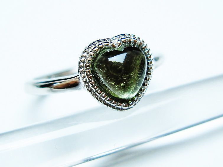 - モルダバイト ハート指輪