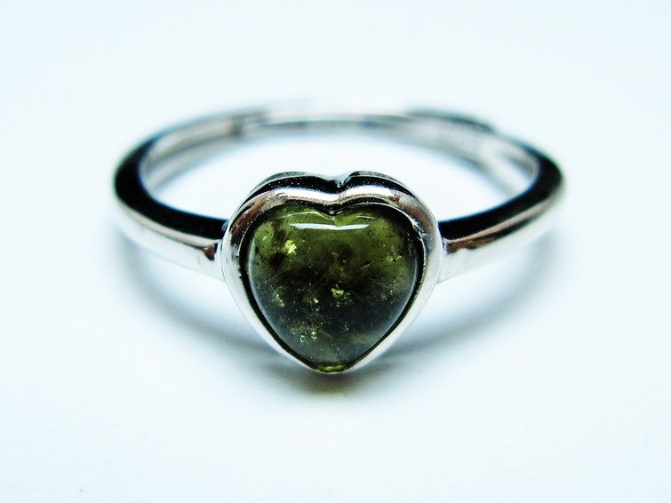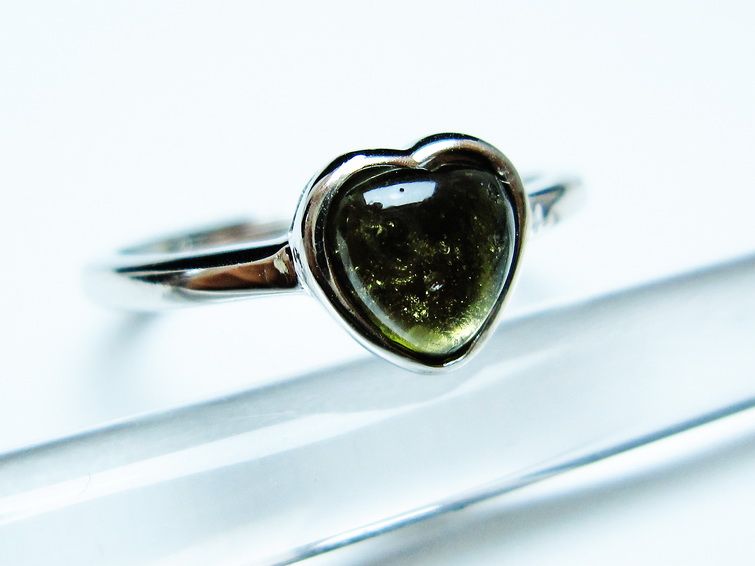 モルダバイト リング 指輪 ハート 13号 フリーサイズ 一点物 199-464