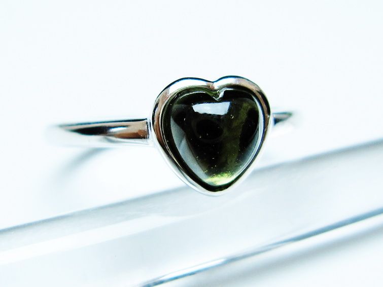 モルダバイト リング 指輪 ハート 13号 フリーサイズ 一点物 199-464