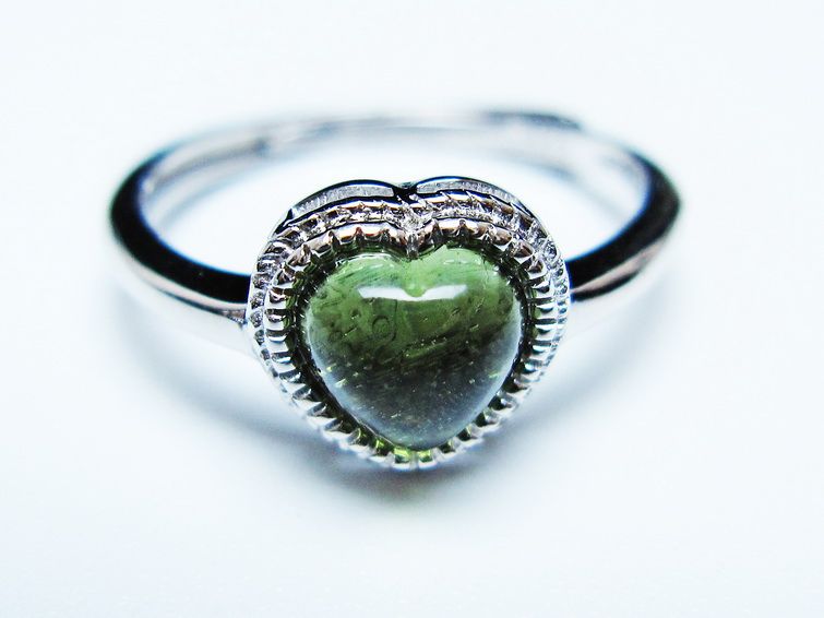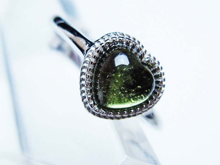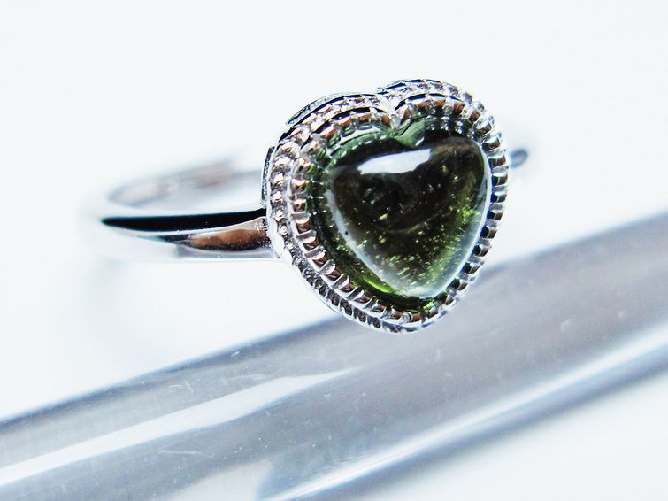 モルダバイト リング モルダウ石 指輪 ハート フリーサイズ 12号 一点物 メール便可 [M便 1/20] 199-610