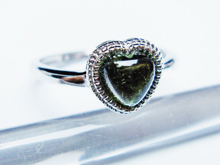 モルダバイト リング モルダウ石 指輪 ハート フリーサイズ 13号 一点物 メール便可 [M便 1/20] 199-612