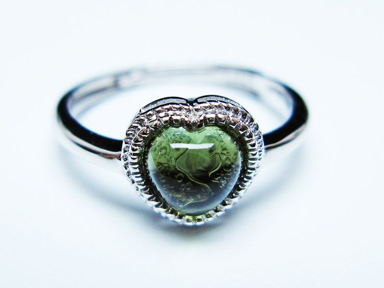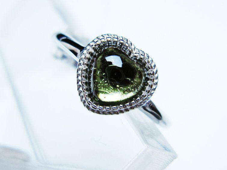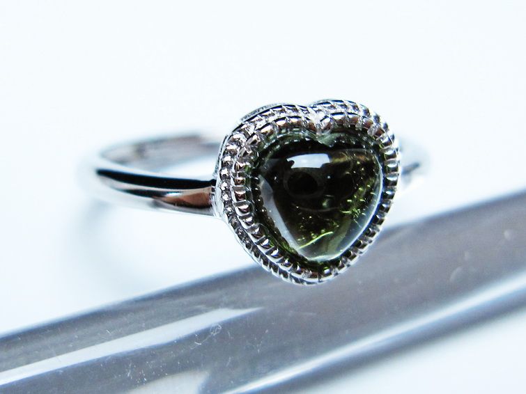 モルダバイト リング モルダウ石 指輪 ハート フリーサイズ 12号 一点物 メール便可 [M便 1/20] 199-615