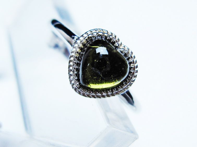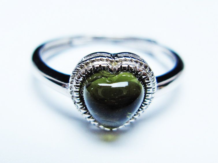 モルダバイト リング モルダウ石 指輪 ハート フリーサイズ 12号 一点物 メール便可 [M便 1/20] 199-616