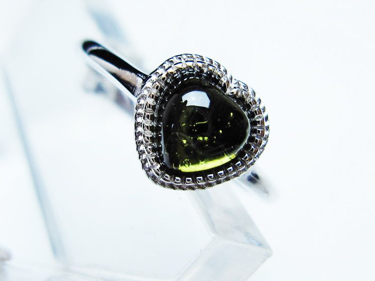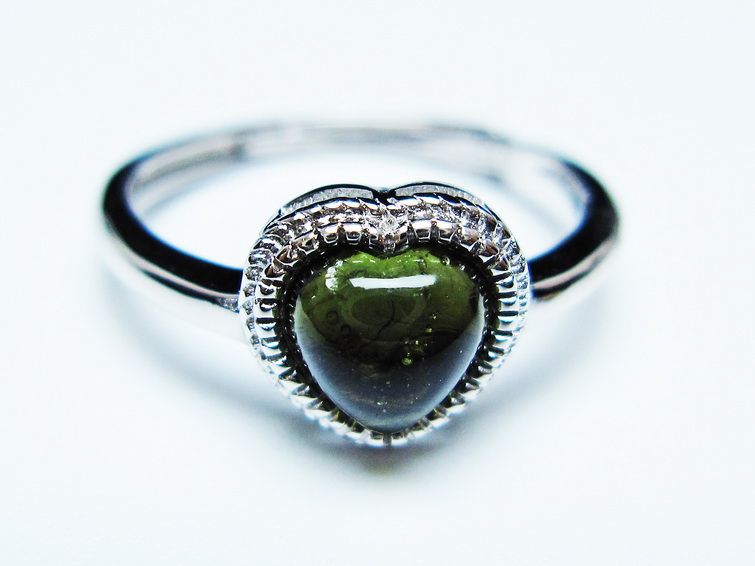 モルダバイト リング モルダウ石 指輪 ハート フリーサイズ 13号 一点物 メール便可 [M便 1/20] 199-617
