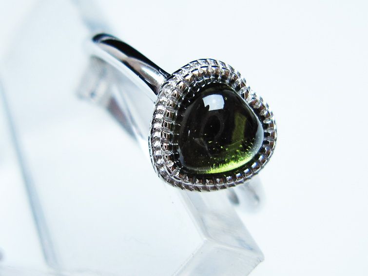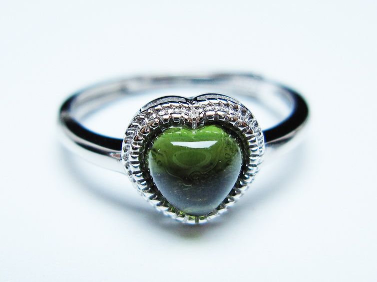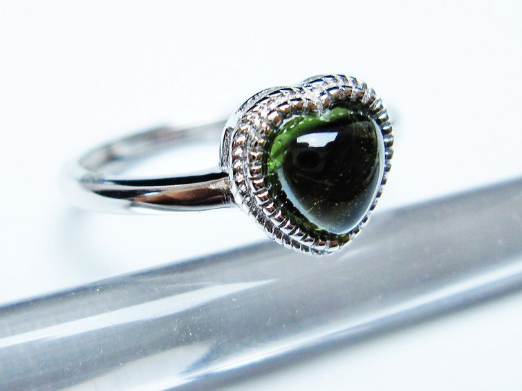 モルダバイト リング モルダウ石 指輪 ハート フリーサイズ 12号 一点物 メール便可 [M便 1/20] 199-620