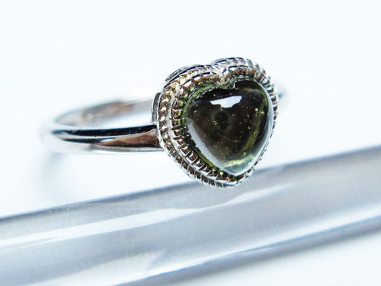 モルダバイト リング モルダウ石 指輪 ハート フリーサイズ 14号 一点物 メール便可 [M便 1/20] 199-621 [sold out]