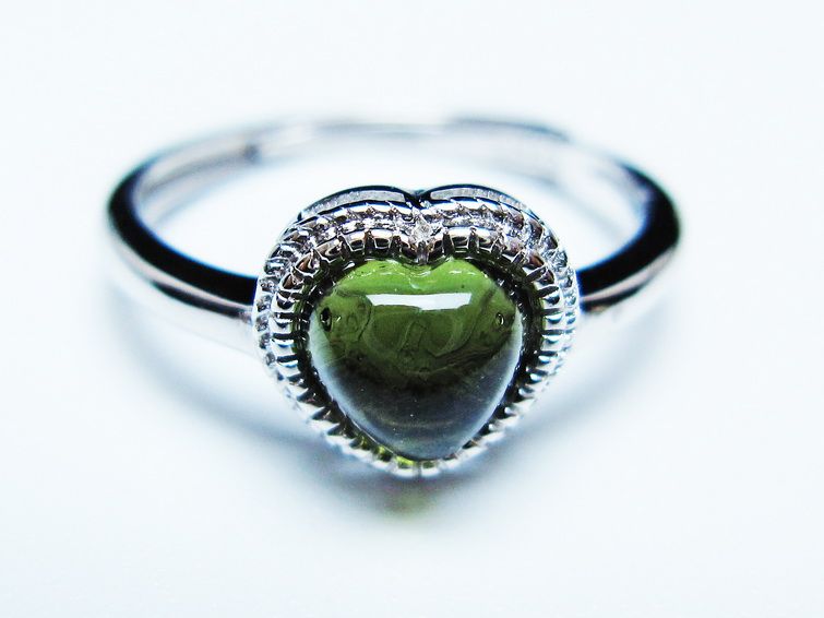 - モルダバイト ハート指輪