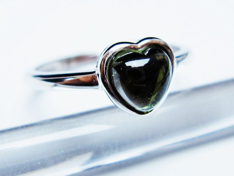 - モルダバイト ハート指輪