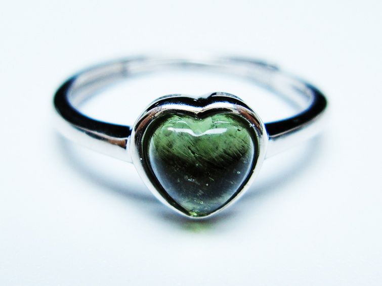 モルダバイト リング モルダウ石 指輪 ハート フリーサイズ 12号 一点物 メール便可 [M便 1/20] 199-648