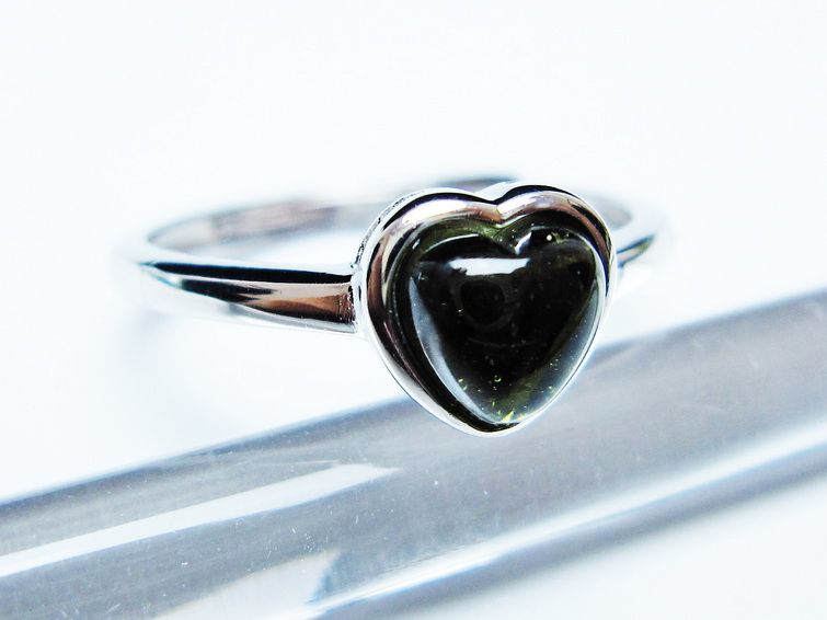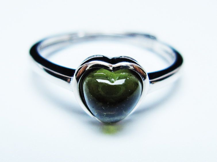 モルダバイト リング モルダウ石 指輪 ハート フリーサイズ 12号 一点物 メール便可 [M便 1/20] 199-660