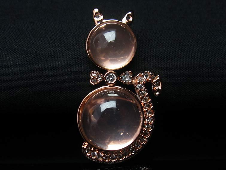 - ミルキークォーツ ペンダント 乳石英 ペンダントトップ レディース ネコ 猫 アニマル