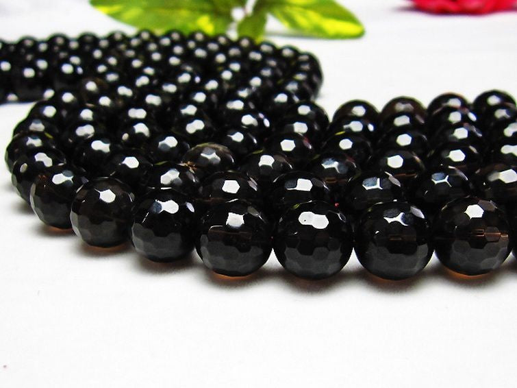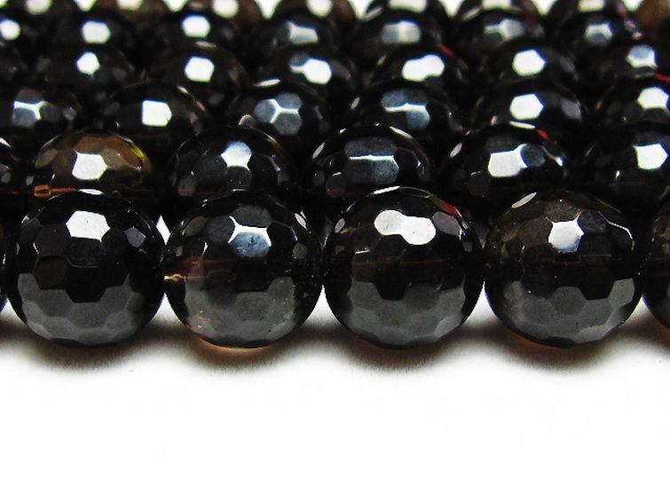 - スモーキークォーツ 煙水晶 一連128面カット 14mm